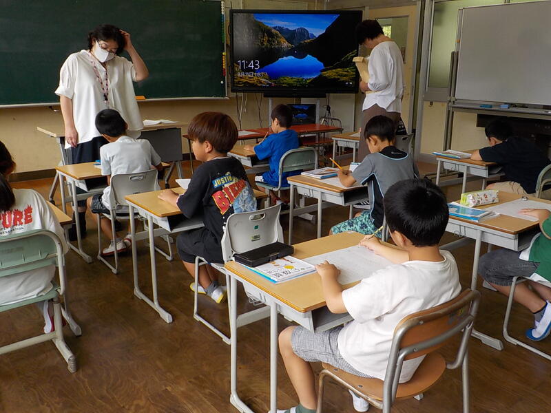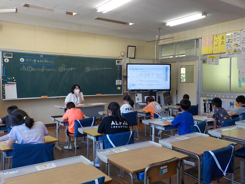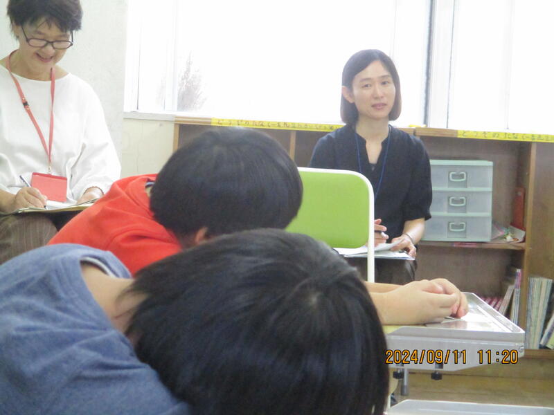 今日は、松橋西支援学校から講師の先生に来ていただいて、授業の様子を参観していただきました! 「どの子も、一生懸命、のびのびと学習していますね!」と褒めていただきました