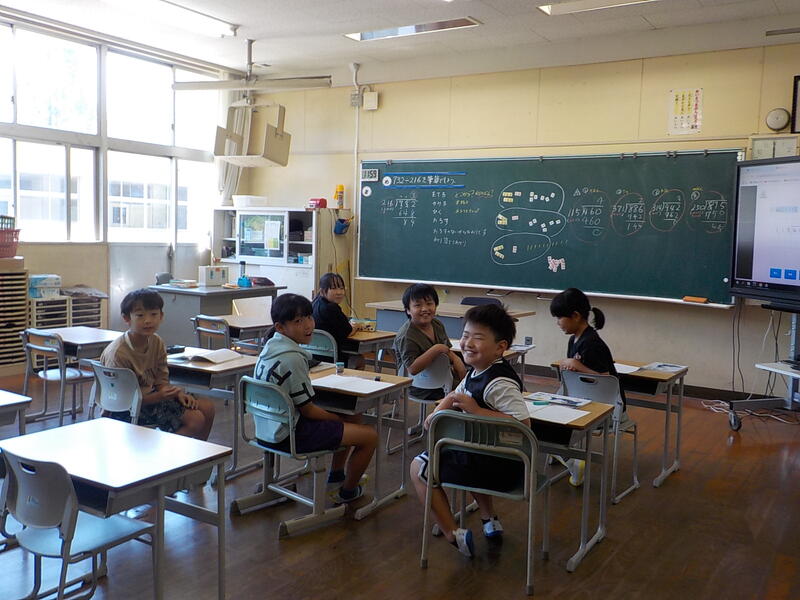 4年生は、算数の問題が一段落して、私が教室に入ると「にっこり