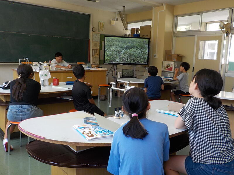 5年生の理科、「すいかのおへその部分には何がついていたでしょう?」不思議を解明するために動画で確認していました
