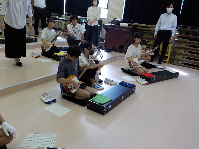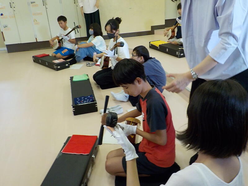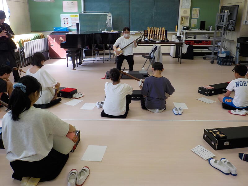 5、6年生は、お箏、三味線、尺八の指導を受けました!子供達はみんな、正座をして、背筋をぴんと立てて、とても良い姿勢で楽器を演奏できました! 短時間でしたが、上手になりましたね