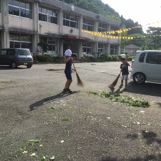 翌日の5日(水)は天気も回復して、登校後から全校で運動場や校舎周りをきれいにしました。学校のために子どもたちと先生方ががんばっている姿がすてきでした。