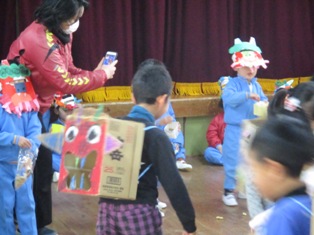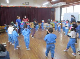 2日(金)、滝尾幼稚園・たんぽぽ園の豆まきに1年生が参加しました。例年、本校1年生が鬼役として訪問して交流を続けています。園児たちに囲まれて、1年生は1年前の自分を思い出し成長も感じられたようです。
