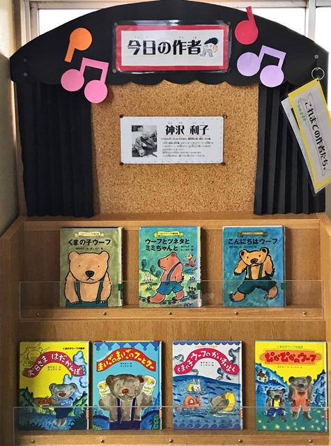 3月8日(金) 図書室前の掲示物です。今日の作者は、エリックカールでした。図書室には、エリックカールの本が沢山ありました。