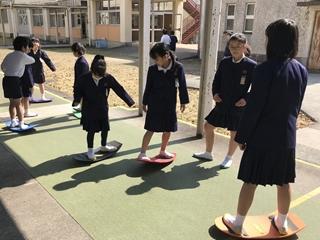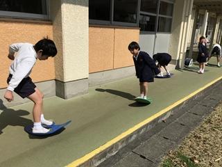 2月26日(火) 今日は、体育委員が各学級に行き、スプーナ-ボードの説明をしました。説明の様子と昼休みに遊んでいる様子です。