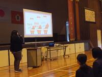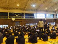 生徒指導からは、後期前半でしっかりできていることやこれから気をつけてもらいたいことについて話があり、冬休みの危険なことについて近くの子とグループ討議がなされ、子供たちから冬休みに気をつけなければならないことが発表されました。