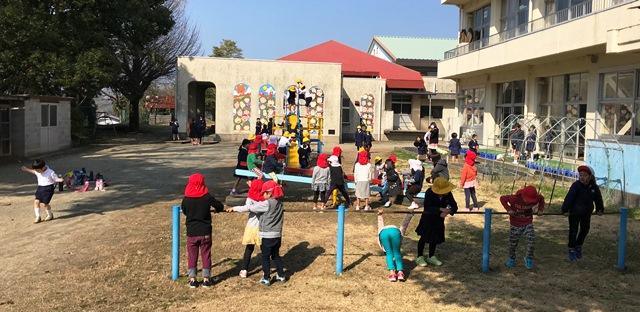 2月21日(木) 今日は昨日に続いて、かわいい訪問者がありました。最初ウッドステーションで遊んだ後、シーソーやジャングルジム、鉄棒で楽しそうに遊んでいました。