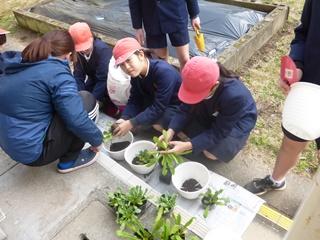 2月22日(金)6年生は、共感力育成のための「感謝の気持ちを伝えようプロジェクト」に取り組んでいます。玉名学「6年間を振り返って」を膨らませて,家庭科の「あなたは家庭や地域の宝物」、学級活動の「感謝の気持ちでクリーン作戦」,卒業式,送る会等を関連させて取り組んでいます。伝える相手は、学校、下級生、友だち、保護者、地域の皆様、先生etcです。どのような方法で伝えるのかを話し合い活動に取り組んでいます。写真は、校舎の中の普段掃除をしない場所をきれいにしているところと〇〇〇にお渡しする予定の花の寄せ植えづくりです。
