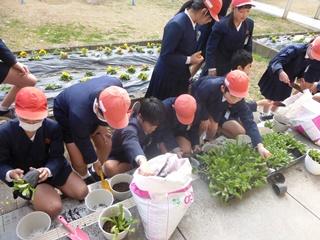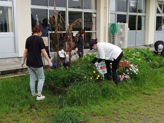 民生委員の方々には子供たちと各学級等の花壇の除草をしていただきました。民生委員の方から