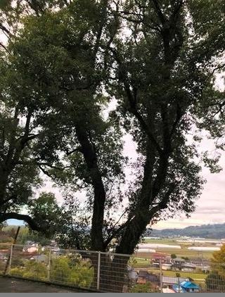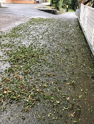2月28日(木) 玉水小学校の北坂を登ったところに、楠木が3本並んでいます。その真ん中の1本だけが、最近葉が散るようになりました。見ただけでは、元気そうなのですが?