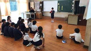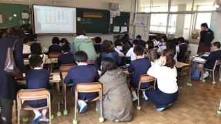 まずは、校長室で玉水小学校の紹介をしました。説明の中で、昔の学校の様子や児童数の変化をお話しました。本校卒業生の方もいらっしゃったので、懐かしそうに話を聞かれていました。説明後は、授業を見てもらいました。6年生の算数では、比の授業があっていました。多様な意見が子供たちから発表され、「さすが6年生。」という姿を見ていただくことができました。