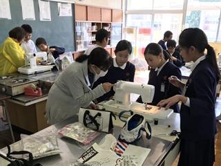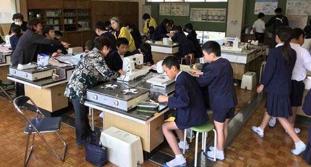 3月5日(火) 今日の5・6校時5年生が家庭科で、エプロンづくりをしました。地域の方がゲストティーチャーとして、9名おいで頂きました。大変ありがとうございました。