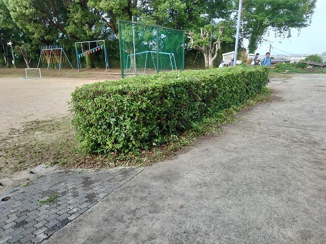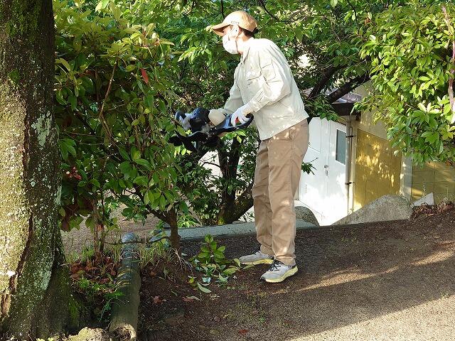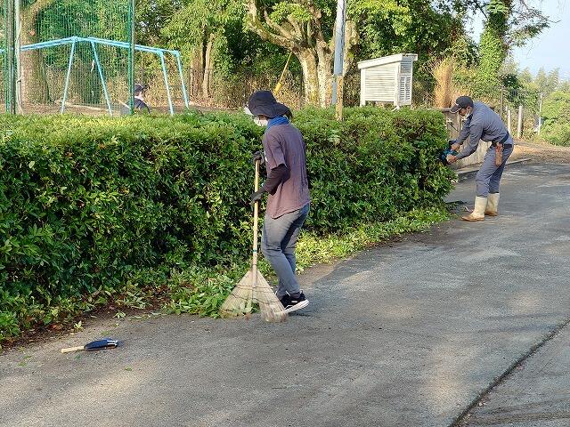 今回は、草取りや草刈りに加え、窓ふきと運動場のツツジの剪定を行っていただきました。運動場の南側や東側のツツジをすっきりと剪定していただきました。