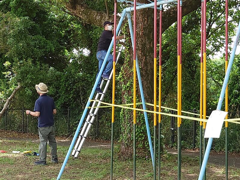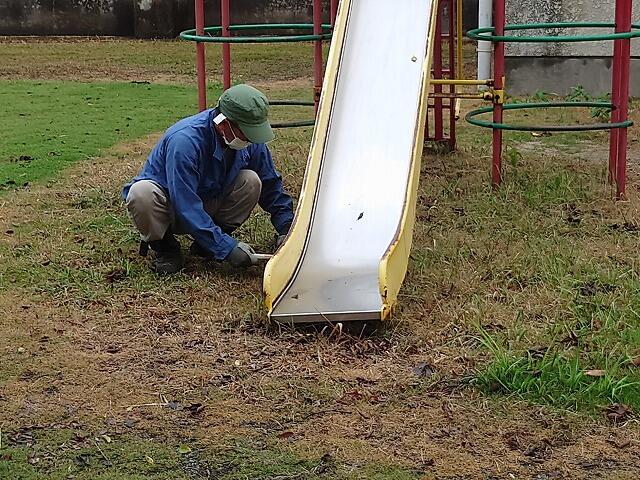 除草作業や草刈りの後には樹木消毒もしていただきました。高木が多いのですが、機械を使ってしっかりと消毒していただきました。子供たちが安心して過ごせます。