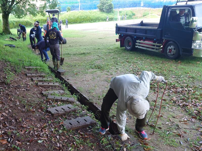今回は草刈りと運動場周囲のU字溝にたまった土砂の撤去を行いました。皆さん汗だくになりながら作業をしてくださいました。