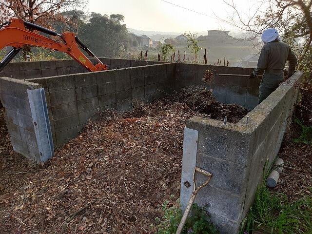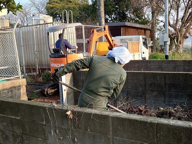 草捨て場では、今年度の作業や普段の掃除で捨てた草や落ち葉、枝などを重機を使ってかき出していただきました。その後は、ダンプで搬出していただきました。