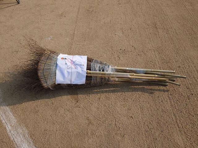 ※ 部田見上区老人会の皆さんから、作業をしていただいた上に、竹ぼうきと松葉かきをいただきました。ありがとうございました。環境整備で子供たちが日ごろから使うものですので、大変ありがたいです。大切に使わせていただきます。