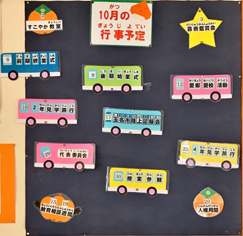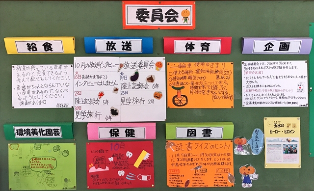 10月9日(火) 児童会の掲示板です。定期的に張り替えが行われています。