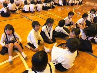 10月29日(月) 5校時に児童集会を実施しました。内容は、①今月の歌②委員会からのお知らせ③人権子ども集会参加児童の発表④音楽会の演奏(3年生・4年生)⑤心スキルタイムでした。人権子ども集会に参加した子供達からは、いじめをなくして笑顔一杯にしたい。という思いを発表してくれました。34年生は、音楽会の事前発表と言うことですばらしい歌声と演奏を披露してくれました。心スキルタイムでは、増田先生の指導のもと、異学年のペアでのふれあいの時間を過ごすことができました。