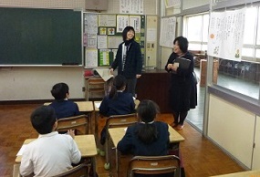 今日、玉名市教育委員会から玉水小学校にエンジョイイングリッシュを子ども達が学習している様子を参観に来られました。
