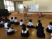 1、2年生は多目的ホールで交通安全協会の方と交通指導員さんから道路歩行