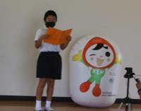 児童会企画委員の子供達が朝から、自分たちで作成した横断幕をもって、