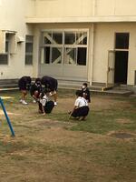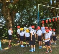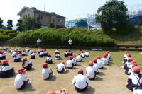 前回の避難訓練は教室から全員で一緒に運動場に避難する訓練でした。