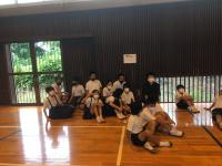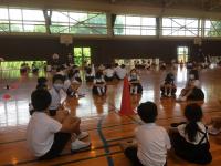 3,4,5,6年生は体育館で自転車の正しい乗り方を学習しました。