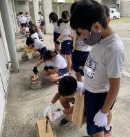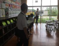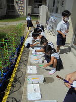 1年生は、学校の様々な場所に行って何があるかを記録する生活科の学習で