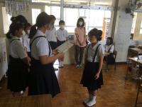 また、その後、5年生が学習した英語を使った会話をするために、校長室に