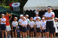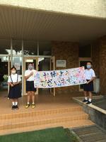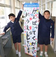 玉水小学校の子供達にこの両マラソンに参加される人を元気づけようと
