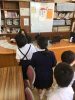子供たちは質問、進行、記録、撮影と役割を分担して学習していました。