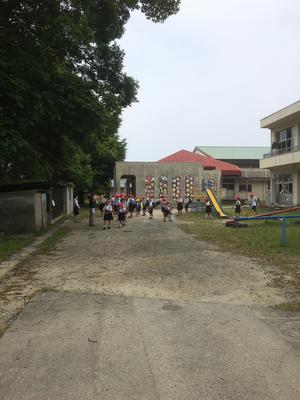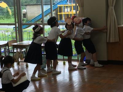 今日は、玉水保育園の園児のみなさんが、小学校にやってきて、運動場で