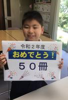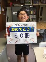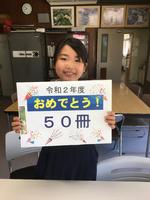 50人の子供たちが50冊を突破しました。図書室前に掲示しています。
