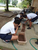 6月17日に横田先生、林田さん、平岡さんの3人に植え方をご指導いただいてサツマイモの苗を