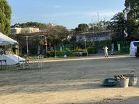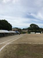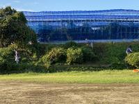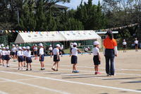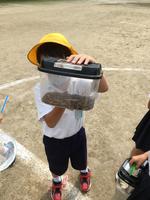 運動場で1年生が虫取り網をもってあちこちに移動しているので、