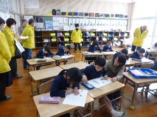 2月4日(月) 6年生が図画工作の授業で絵手紙を作りました。講師として絵手紙「星の子会」から川本はま子様を始め5名の方に指導して頂きました。