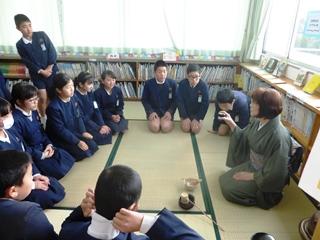 1月28日(月) 今日は、5・6年生が玉名学で茶道を体験しました。和菓子の食べ方お茶の入れ方の作法を学び実際に活動しました。短時間で茶道の心を身につけるのは難しいと思いますが、貴重な体験をすることができました。