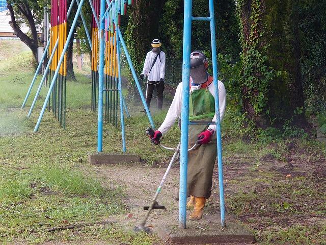 夏に比べ涼しい気候となり、子供たちが外で元気に走り回る姿を見ることが増えました。保育園跡地でも元気に遊んでいる子供たちですが、雑草で足元が見えにくい点が気になっていました。
