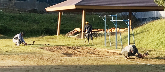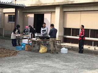10月28日(日) 玉水小学校のグラウンドで、玉水祭りがありました。各地区からゴミ拾いをしながら学校に集まり、立花神楽の実演があり、ペタンクをみんなで楽しんで、お弁当を食べます。写真は、その様子の一部です。