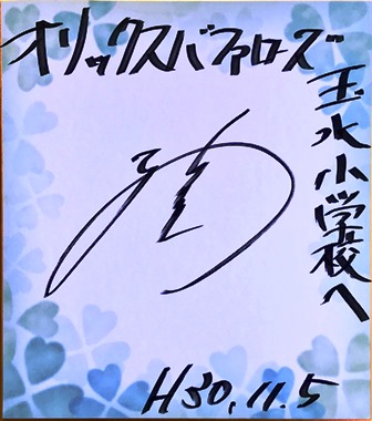 11月9日(金) 荒西投手(オリックス)のサイン入り色紙です。玉水校区のみんなで応援して元気と勇気を届けましょう。