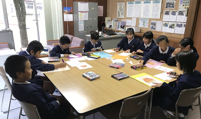 11月27日(火) 昼休み PTAバザーに協力する子供達が、校長室に集まり、看板作りをしました。当日の販売のお手伝いも含め、子供達もPTAへの貢献が少しでもできるように頑張っています。