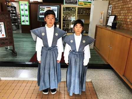 例大祭が終わったあと、地区に移動する前に学校に挨拶に来てくれました。写真は、そのときの様子です。