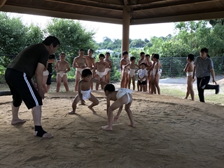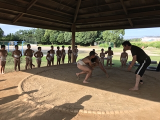 7月10日(火)今日は、先週悪天候で中止になった相撲の練習がありました。松本さんにおいでいただき、ご指導をいただきました。子供たちは、初練習でしたが、熱心に取り組んでいました。