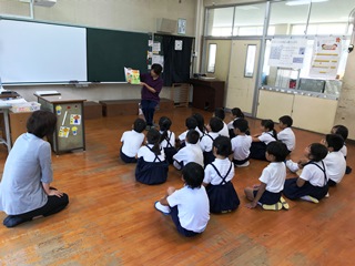 7月19日(木) 今日は、子供達が楽しみにしている読み聞かせの日でした。エアコンの入った快適な部屋での読み聞かせは、一段と集中できそうです。いつも読み聞かせへのご協力大変ありがとうございます。