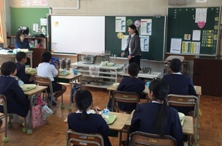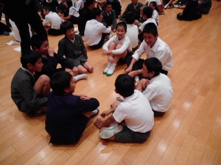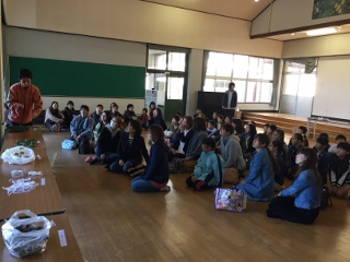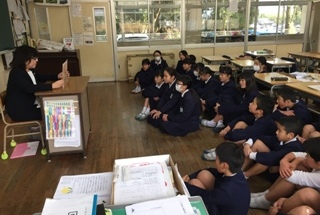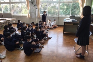 10月26日(木) 14:00~天水中学校の体験入学がありました。今年度が初の試みです。まず、学校概要の説明があり、次に英語と音楽の授業を体験しました。そして、生徒会執行部が学校紹介をし、最後に6人組のグループに中学生が一人ずつ入り、小学生からの質問に答えてくれました。とても盛り上がったそうです。子ども達も天水中学校のことがよく分かったと思います。