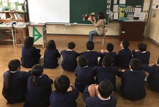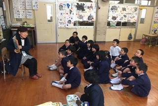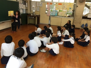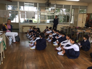 10月31日(火) 4校時 34年生が民生員・児童員さん方との交流を行いました。民生児童員さん7名【徳永さん、米野さん、大保さん、畑岡さん、小川さん、西村さん、塚本さん】と主任児童員さん2名【鶴窪さん、石川さん】の方の参加がありました。まず、3年生が、国語「伝えよう楽しい学校生活」の発表をしました。次に34年生が音楽会の発表曲の演奏をしました。最後に4年生が、玉名学「生き生きとくらせる福祉のまち玉名」の学習で民生員・児童員さん方に質問をして仕事への思いや内容などを学びました。3年生からは、ハローウィンにあわせたプレゼントとジャンボひまわりの種を贈りました。学習のゴールとして、地域の方との交流ができたことは良い機会となりました。