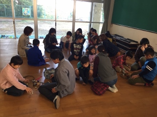 10月29日(日) 玉水祭りが開催されました。雨の影響から体育館での開催となりました。最初地域のゴミ拾いをしながら集まる予定でしたが、変更になりました。まず、神楽を子ども達が踊った後、ペタンクが行われました。その後、バーベキューが予定されています。大勢の方が参加され、地域のつながりを感じました。写真は、ペタンクの様子です。