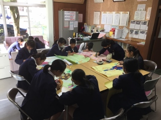 11月15日(水) 午後PTA役員の方が集まられて、バザーの準備をされていました。学校のために貴重な時間を使って取り組んで頂いています。本当にありがとうございます。また、その一方で6年生の有志が参加して、看板づくりや販売の手伝いをする計画も進めています。プチ社会体験とお客さんになるだけでなく、運営に関わる経験をしてほしいという思いからです。写真は、その様子です。
