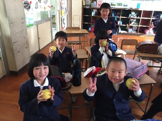 12月5日(火) 今日子どもたちにお知らせとともにリンゴを渡しました。1~3年は1個、4~6年は2個です。リンゴは、青森県のJA津軽みらい様から贈呈されたものです。詳しくはお知らせをご覧ください。子どもたちも大喜びでした。