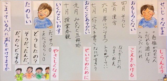 3 「どうしたの?」「そうだったんだ」「それならどうしたいの?」この3つとても学ばせていただきました。まずは、関心を持って相手を受け入れること、簡単なようで、なかなかできていないことを反省しました。これから生かしていきたいです。一人のこのことをクラスのみんなに相談することはどうなんだろうと最初思いましたが、まずは関心を持つことでこんなに周りも変わっていくなんてびっくりでした。友だちを思い合う子どもたちの素直さにわたしも優しい親でありたいと思うものです。ありがとうございました。